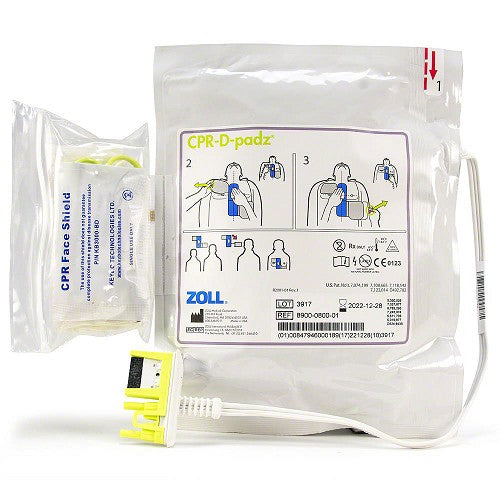 The ZOLL CPR-D-Padz® are a one-piece defibrillation and CPR system with compression depth and rate sensors. CPR-D-Padz are manufactured with a five-year shelf life.The package includes: